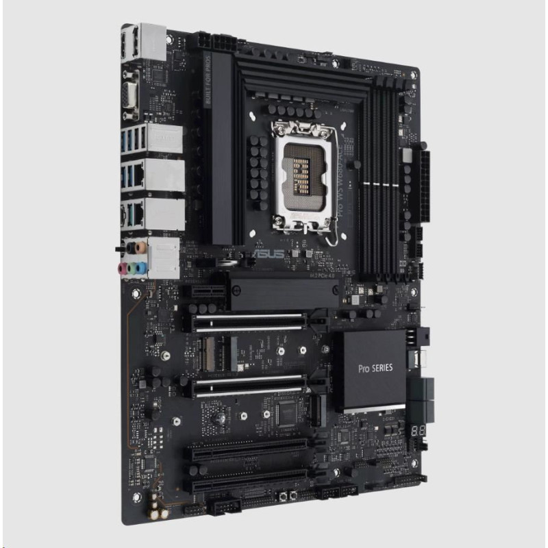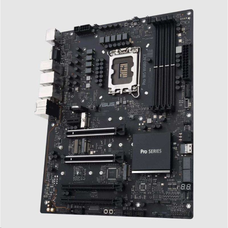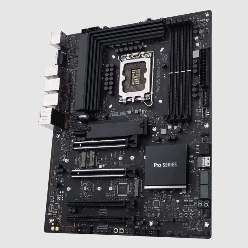 Intel W680 (LGA 1700) ATX motherboard, PCIe 5.0, DDR5, dual Intel 2.5 Gb Ethernet, three PCIe 4.0 M.2 slots, USB 3.2 Gen 2x2 front panel connector, SlimSAS, SATA 6 Gbps, HDMI, DisplayPort and VGA