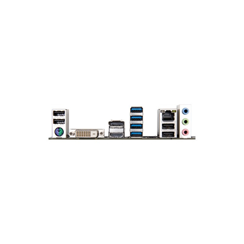 Zadní konektory: 3.5mm jack (3x) 7.1CH, DVI-D (1x), HDMI (1x), LAN 1Gb/s (1x), PS/2 (1x), USB 2.0 Type-A (4x), USB 3.2 Gen 1 Type-A (4x)