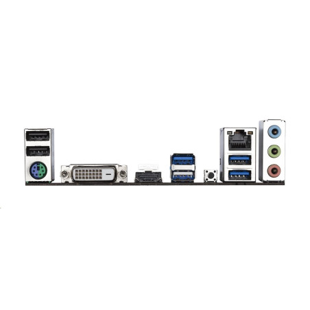 Zadní konektory: 3.5mm jack (3x) 7.1CH, BIOS Flashback, DVI-D (1x), HDMI (1x), LAN 1Gb/s (1x), PS/2 (1x), USB 2.0 Type-A (2x), USB 3.2 Gen 1 Type-A (4x)