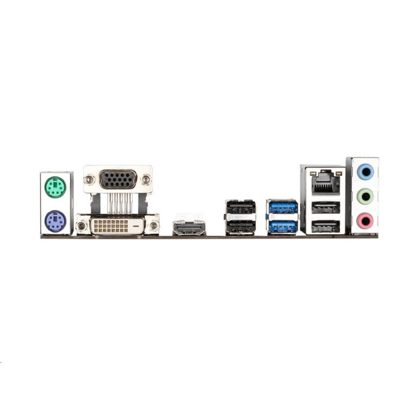Zadní konektory: 3.5mm jack (3x) 7.1CH, D-Sub (1x), DVI-D (1x), HDMI (1x), LAN 1Gb/s (1x), PS/2 (2x), USB 2.0 Type-A (4x), USB 3.2 Gen 1 Type-A (2x)