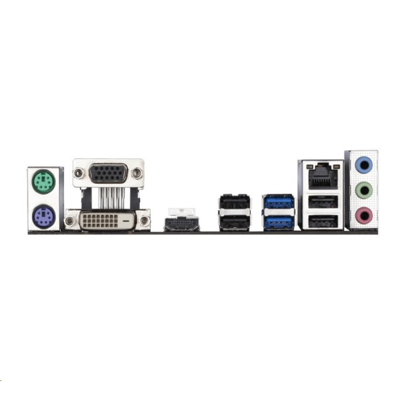 Zadní konektory: 3.5mm jack (3x) 7.1CH, D-Sub (1x), DVI-D (1x), HDMI (1x), LAN 1Gb/s (1x), PS/2 (2x), USB 2.0 Type-A (4x), USB 3.2 Gen 1 Type-A (2x)