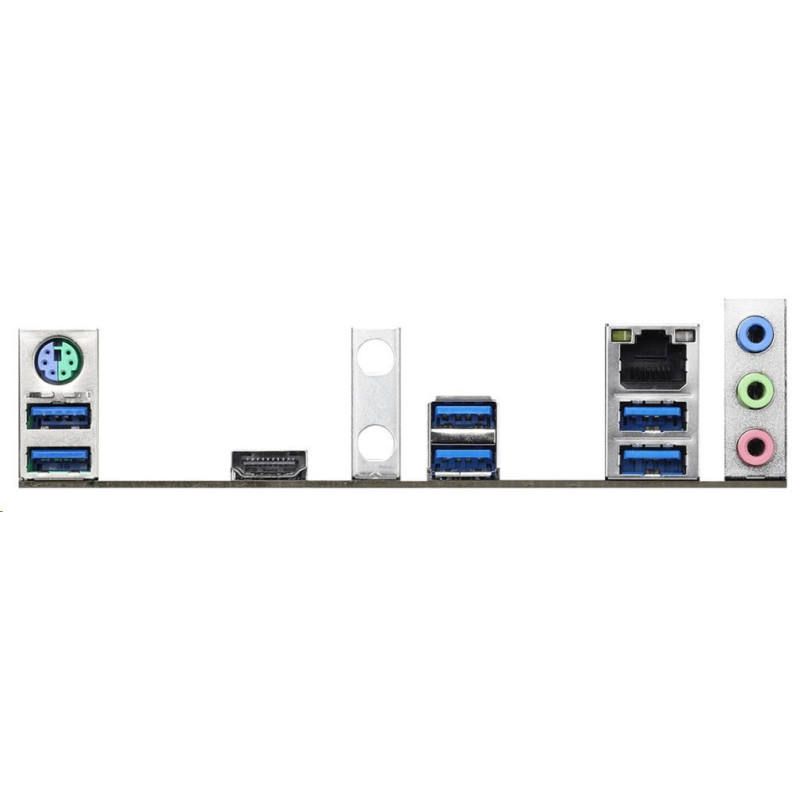 Zadní konektory: 3.5mm jack (3x) 7.1CH, HDMI (1x), LAN 1Gb/s (1x), PS/2 (1x), USB 3.2 Gen 1 Type-A (6x)