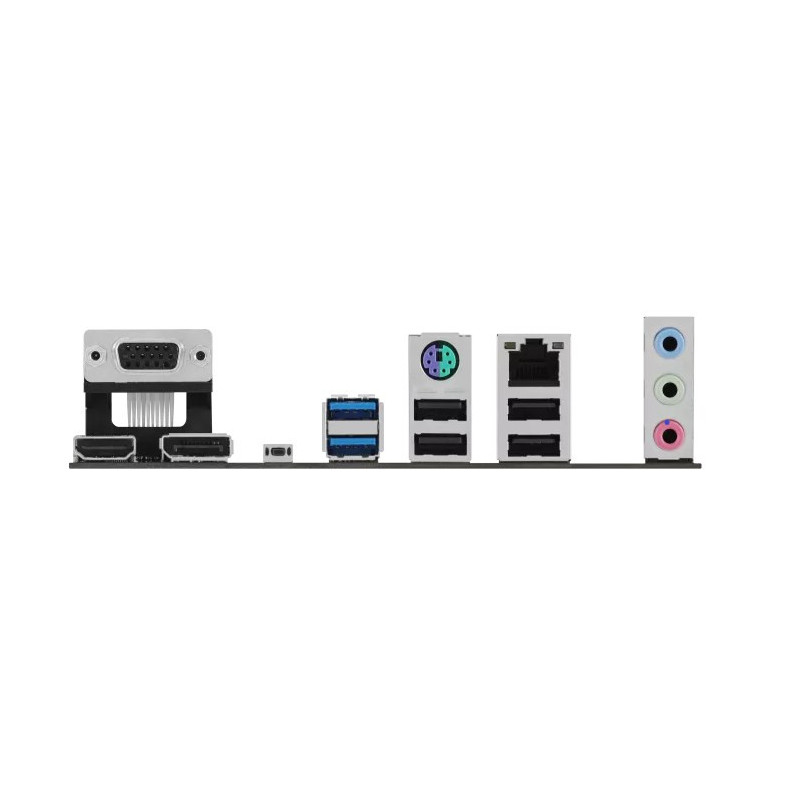 Zadní konektory: 3.5mm jack (3x) 7.1CH, BIOS Flashback, DisplayPort (1x), D-Sub (1x), HDMI (1x), LAN 1Gb/s (1x), PS/2 (1x), USB 2.0 Type-A (4x), USB 3.2 Gen 1 Type-A (2x)