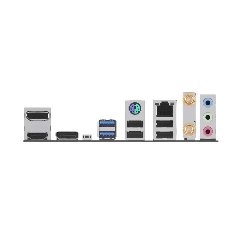 Zadní konektory: 3.5mm jack (3x) 7.1CH, BIOS Flashback, DisplayPort (2x), HDMI (1x), LAN 2,5Gb/s (1x), PS/2 (1x), USB 2.0 Type-A (4x), USB 3.2 Gen 1 Type-A (2x)