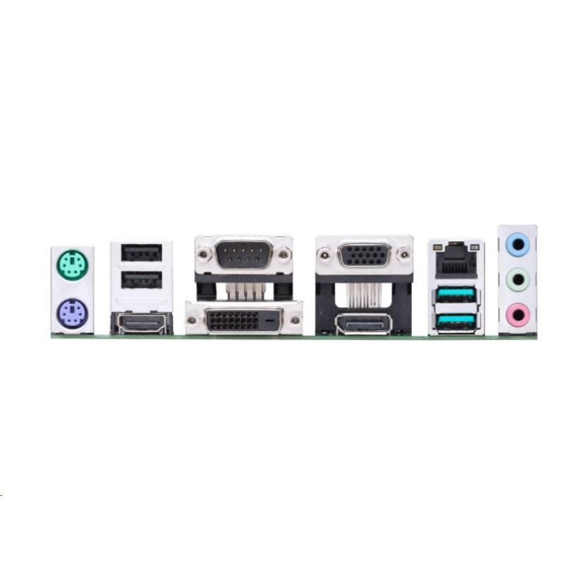 Zadní konektory: 3.5mm jack (3x) 7.1CH, COM (1x), DisplayPort (1x), D-Sub (1x), DVI-D (1x), HDMI (1x), LAN 1Gb/s (1x), PS/2 (2x), USB 2.0 Type-A (2x), USB 3.2 Gen 2 Type-A (2x)