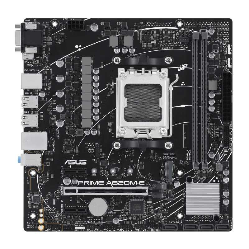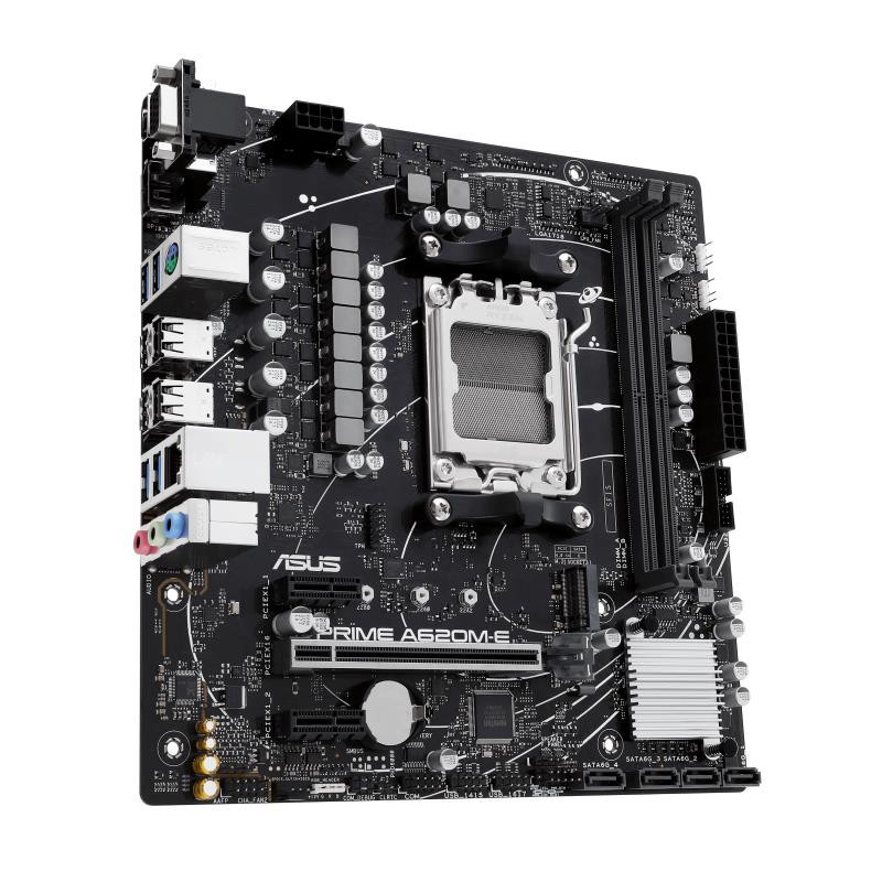 AMD A620 micro-ATX motherboard, DDR5, PCIe 4.0 Graphics card and PCIe 4.0 M.2 support, DisplayPort, HDMI™, VGA, USB 3.2 Gen 1 Type-A, SATA 6 Gbps, Two-Way AI Noise Cancellation, Aura Sync