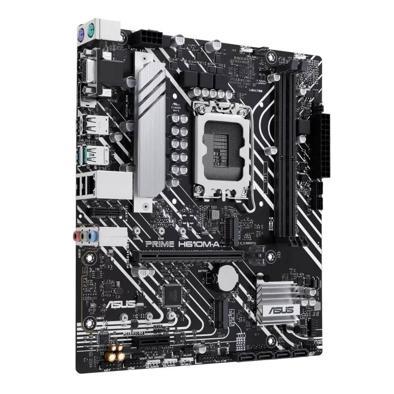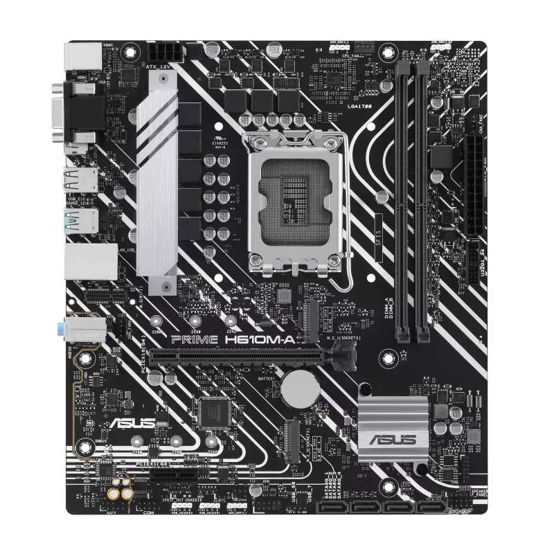 Intel H610 (LGA 1700) mATX motherboard with PCIe 4.0, dual M.2 slots, DDR5, Intel 1Gb Ethernet, DisplayPort, HDMI™, VGA, USB 3.2 Gen 2 ports, Addressable Gen 2 headers, and Aura Sync