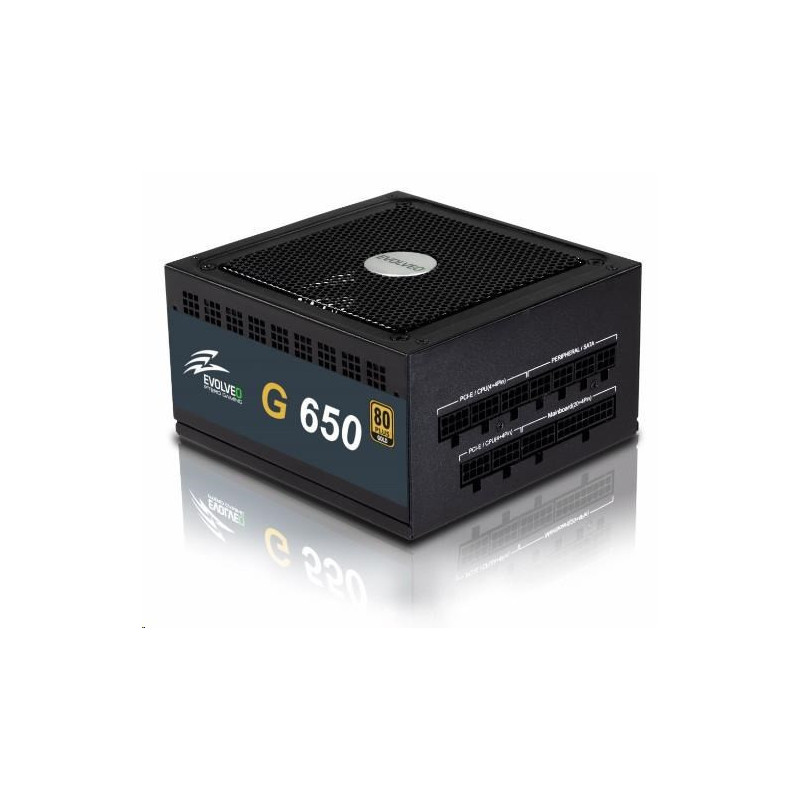 Zdroj EVOLVEO G650 je ideální volba do jakéhokoliv herního počítače. Vyjímá se především účinností s certifikací 80 PLUS GOLD zaručující účinnost až 90%. Zdroj je plně modulární, z toho důvodu je možné připojit jen nejnutnější kabely. Součástí je i tichý 140mm ventilátor. V kombinaci se semi-pasivním chlazení do 30% zatížení je zaručen tichý chod zdroje. Nedílnou součástí jsou i ochrany proti poškození komponent v PC a i zdroje samotného.