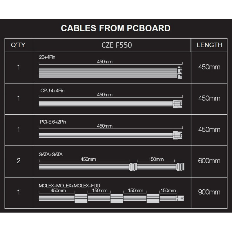 • Ventilátor 14cm, zelený • Aktivní PFC • Certifikace 80+ • Účinnost minimálně 82%/85%/82% při zátížení 20%/50%/100% • Ochrana proti zkratu, přetížení, přepětí a podpětí • kabeláž: • 1x MB 20+4pin 450 mm • 1x cpu 4pin (8pin - 4+4) 450 mm • 1x VGA PCI-E 6+2pin 450 mm • 1x MOLEX, 450mm + MOLEX 150mm + MOLEX 150 mm + FDD 150 mm • 2x kabel S-ATA 450mm+ S-ATA150mm • černá barva MIL-STD-810G:2008