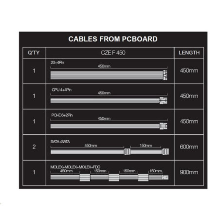 * 1x MOLEX, 450mm + MOLEX 150mm + MOLEX 150 mm + FDD 150 mm