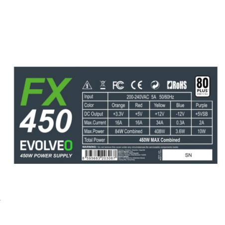 EVOLVEO FX 450, zdroj 500W ATX, 14cm, tichý, 80+, bulk
