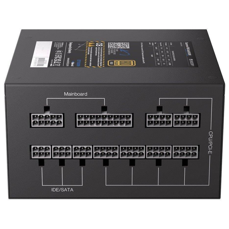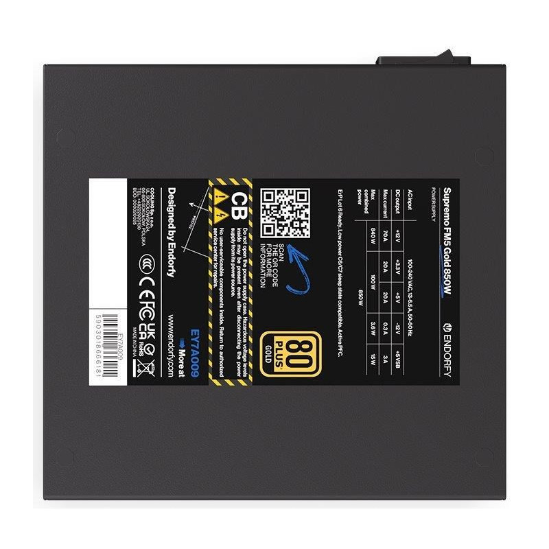 Napájecí zdroj o výkonu 850 W je osazen tichým, 120 mm velkým ventilátorem. Modulární kabeláž ušetří cenné místo ve skříni. Účinnost zdroje je 80PLUS Gold.