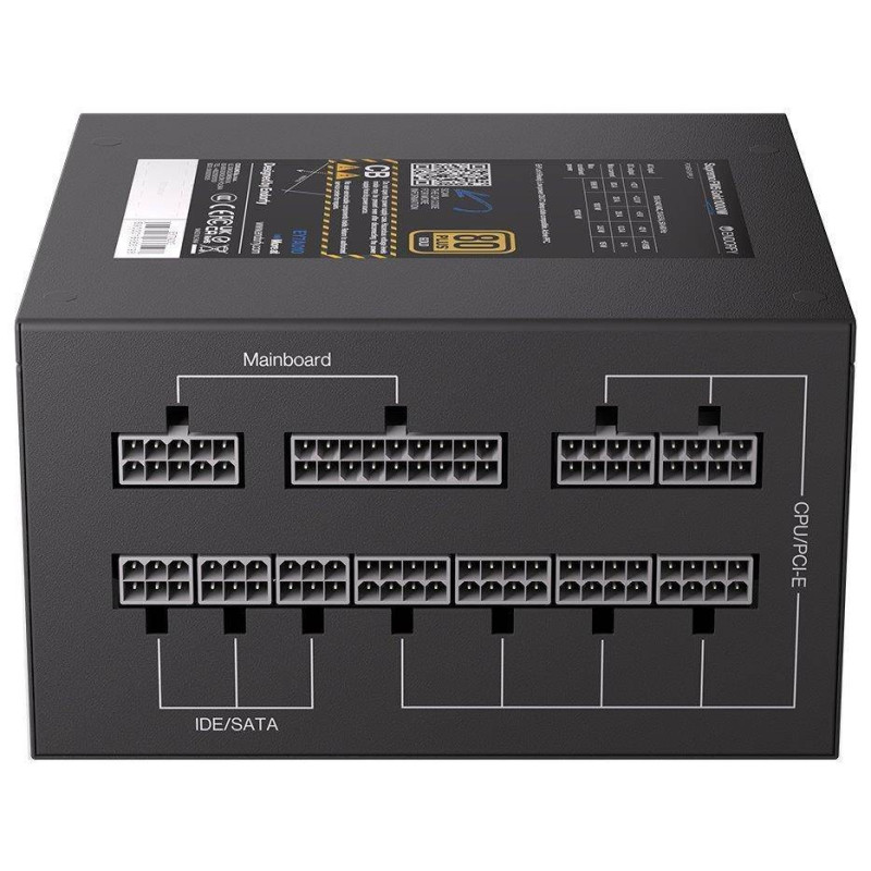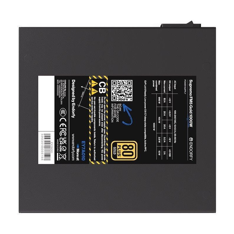 Napájecí zdroj o výkonu 1000 W je osazen tichým, 120 mm velkým ventilátorem. Modulární kabeláž ušetří cenné místo ve skříni. Účinnost zdroje je 80PLUS Gold.