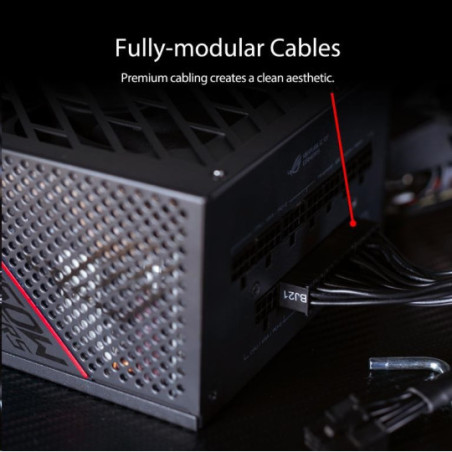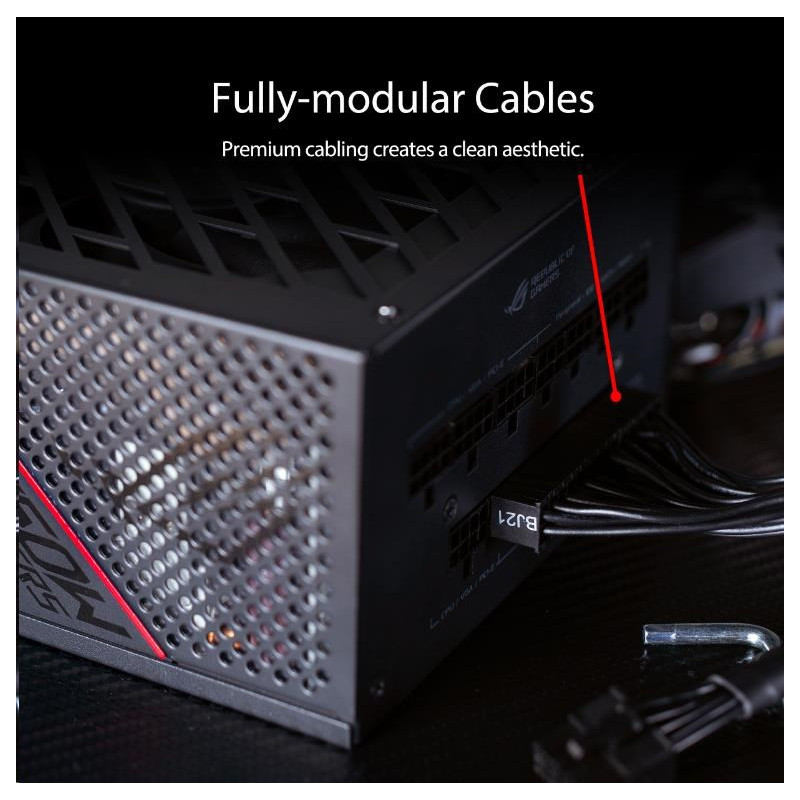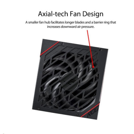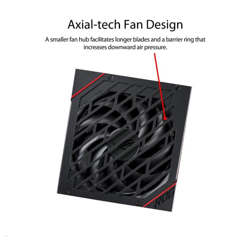 Zlatý zdroj napájania ROG Strix 1000W prináša prémiový chladiaci výkon pre ťažké herné zostavy s chladičmi ROG a dizajnom ventilátorov Axial-tech. Vďaka nízkym teplotám je ROG Strix neuveriteľne tichý aj pri plnom zaťažení.