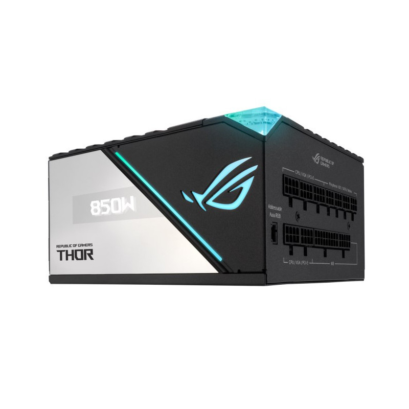 Napájací zdroj ROG Thor 850W Platinum vyniká technológiou Aura Sync a displejom OLED