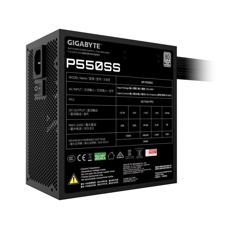 GIGABYTE zdroj P550SS, 550W, 80+ Silver, 120mm, ATX 3.0, černá