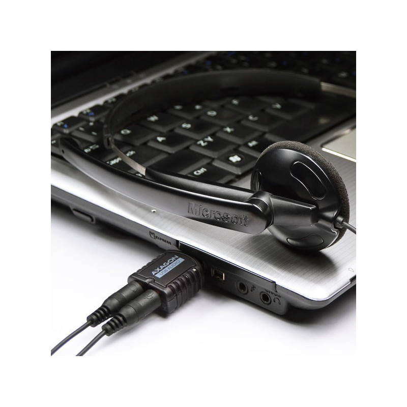Zvuková karta v miniaturním provedení je vhodná jak pro stolní počítače, tak pro notebooky a dovolí připojení sluchátek, mikrofonu nebo headsetu např. pro službu Skype. Dobře poslouží také jako náhrada porouchané původní zvukovky v notebooku.