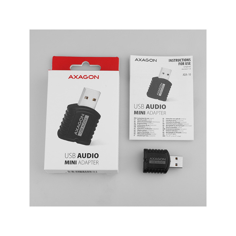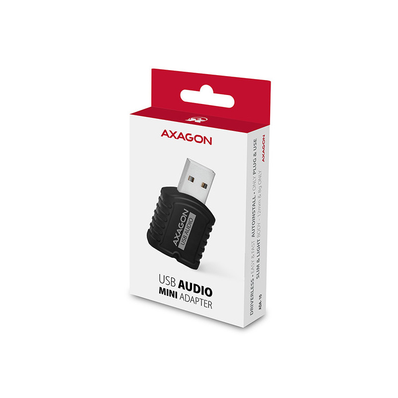 USB audio MINI adaptér AXAGON ADA-10 snadno a rychle doplní počítač o externí USB zvukovou kartu.