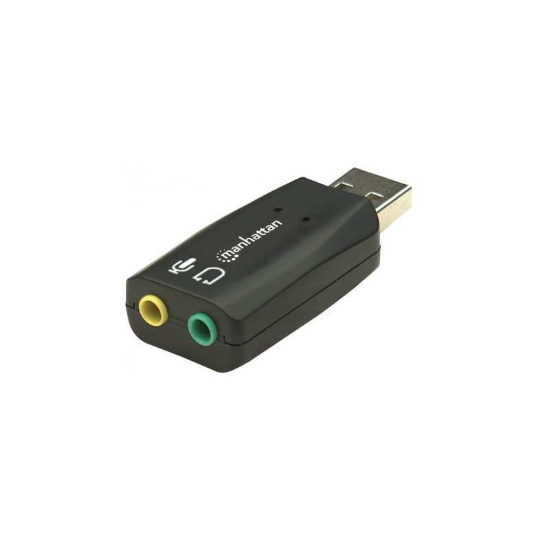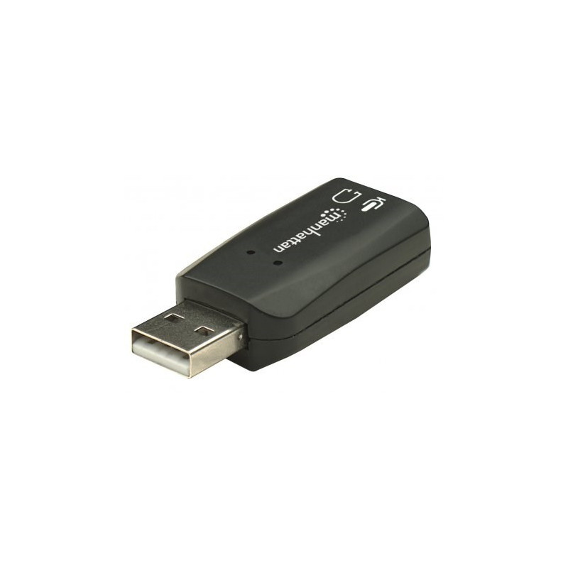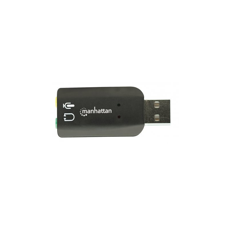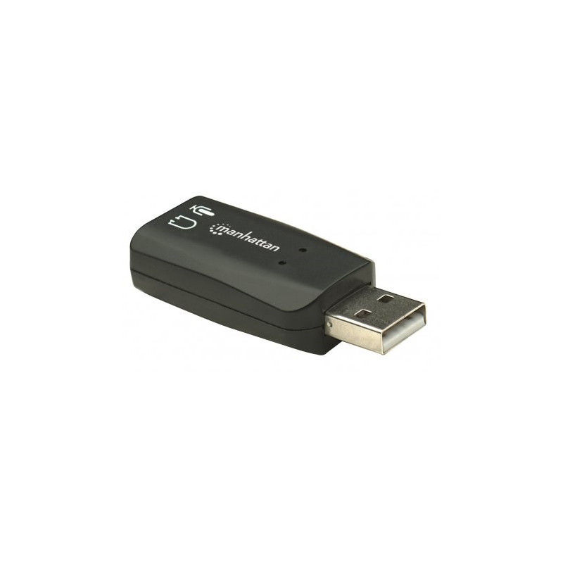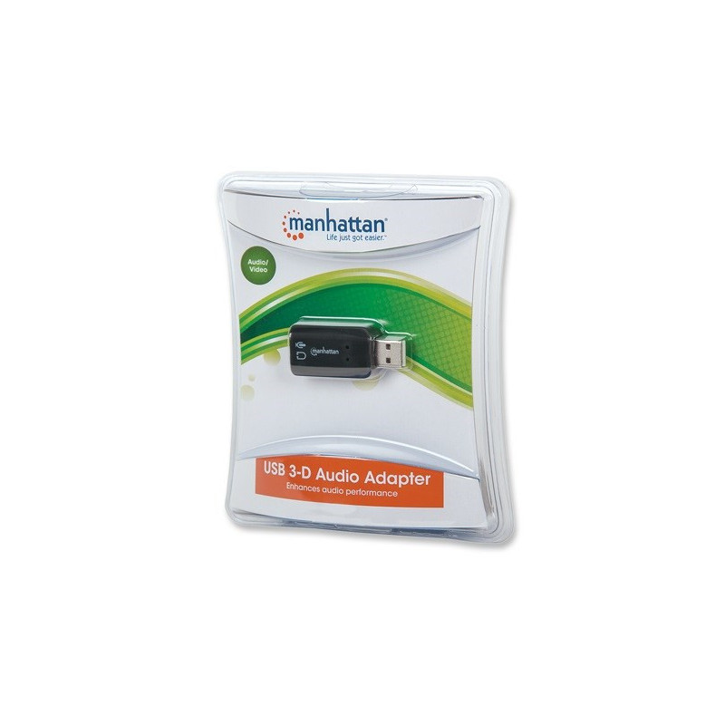 Ideal for desktop, notebook and netbook computers, the Manhattan Hi-Speed USB 3D Sound Adapter instantly creates microphone-in and audio-out ports through any USB port. Easily connect headsets, microphones and speakers equipped with 3.5 mm cables that are too short to comfortably reach ports with awkward or inconvenient locations. With Plug and Play and hot-swap capabilities, it easily replaces inoperative sound cards, bypasses damaged audio ports and improves access without special drivers or software. A built-in Class-B power amplifier utilizes USB bus power, eliminating the need for external energy supplies or additional cables. Support for 3-dimensional audio and virtual 5.1 surround sound and built-in sound effects with a 10-band equalizer deliver rich, high-quality experiences with familiar USB convenience and functionality.