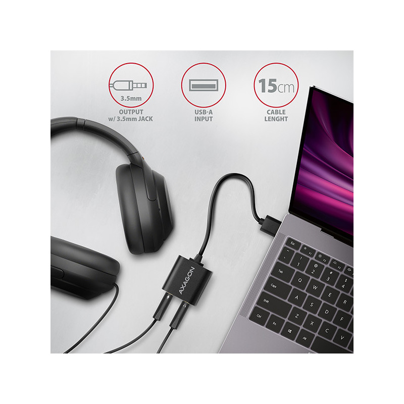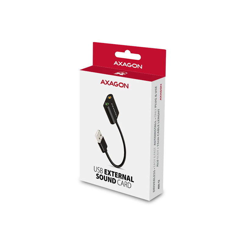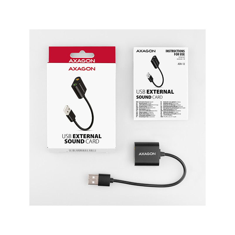 Externí USB zvuková karta AXAGON ADA-12 snadno a rychle doplní počítač o chybějící sluchátkový výstup nebo vstup pro mikrofon. Dobře také poslouží také jako náhrada porouchané původní integrované zvukovky v notebooku.