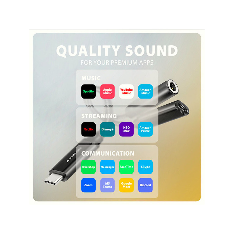 Tato zvuková karta je optimální pro bezztrátové formáty jako FLAC, WMA, WAV, APE, AAC nebo ALAC atd. Poslech hudby v nejvyšší možné kvalitě je dostupný prostřednictvím prémiových účtů platforem jako jsou Spotify, Apple Music, YouTube Music a Amazon Music Unlimited. Kromě toho, můžete tento audio adaptér využít i pro nerušené sledování dalších oblíbených streamovacích služeb, jako jsou Netflix, Disney+, HBO Max, Amazon Prime nebo Apple TV+.